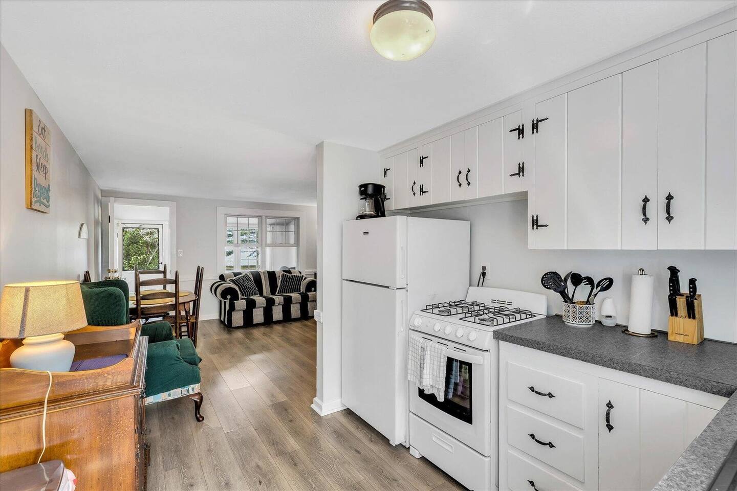 Unit 3 features two bedrooms and one bathroom. The master bedroom has a queen bed, while the second bedroom has two twin bed. The kitchen is fully equipped with everything you need. There is additional space just behind the living room, and you have direct access to the waterfront from the entrance. Note: There are 4 units total on the property, side by side. *Please bring your own Beach Towels* No Beach towels are available
