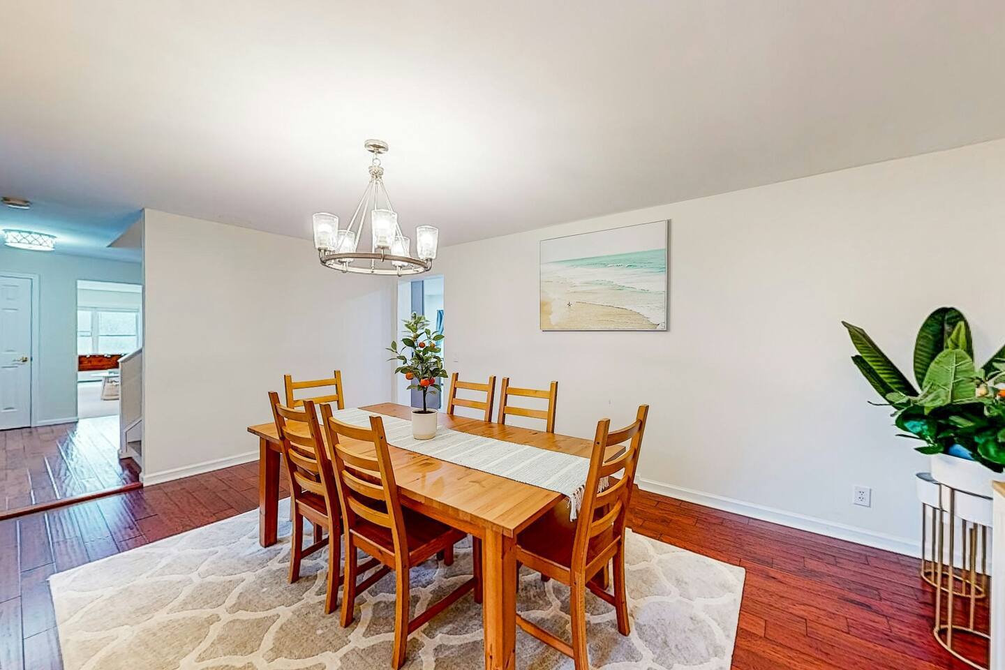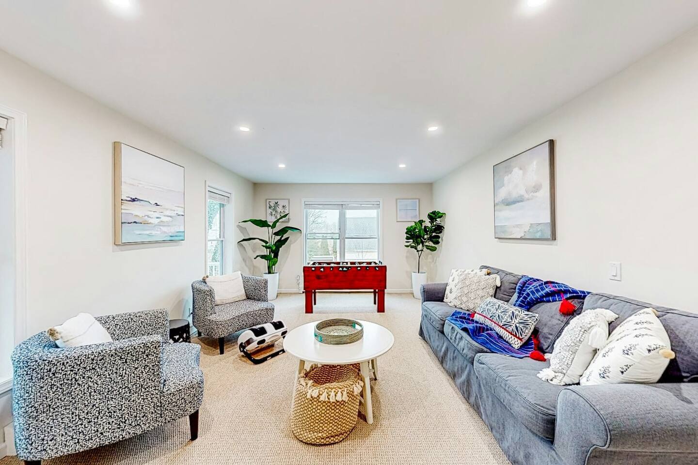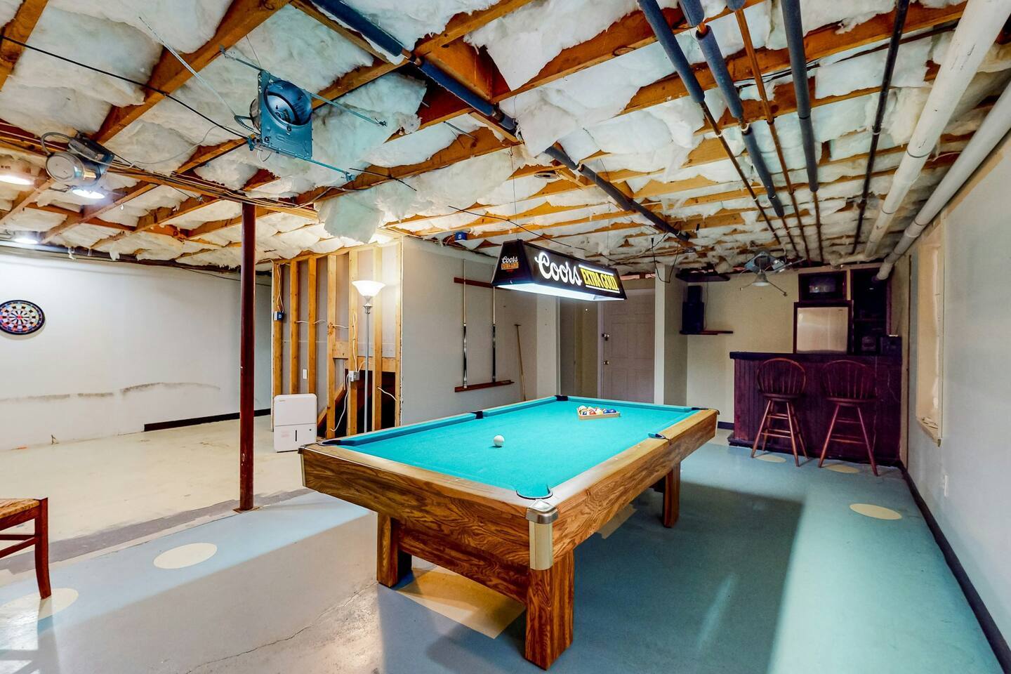 This property features 4 spacious bedrooms with 1 king and 1 queen, 1 Full & 2 twin beds for a restful sleep. Enjoy 2 full bathrooms with both a bathtub and shower. The cozy living room a foosball table, the basement has a pool table and the garage has a few bicycles for you to explore the town with.