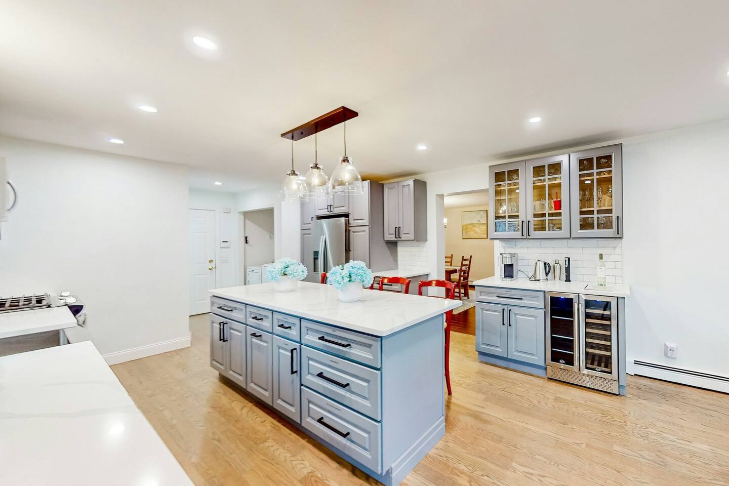 Escape to this large & spacious 4-bedroom Falmouth home, perfect for families and groups. Enjoy the game room with pool and foosball, provided bikes for exploring, and beach gear for sunny adventures. Relax in comfortable bedrooms or cook in the fully equipped kitchen. The outdoor space offers a peaceful retreat after a day at nearby beaches or downtown. Book now for your perfect Cape Cod getaway!