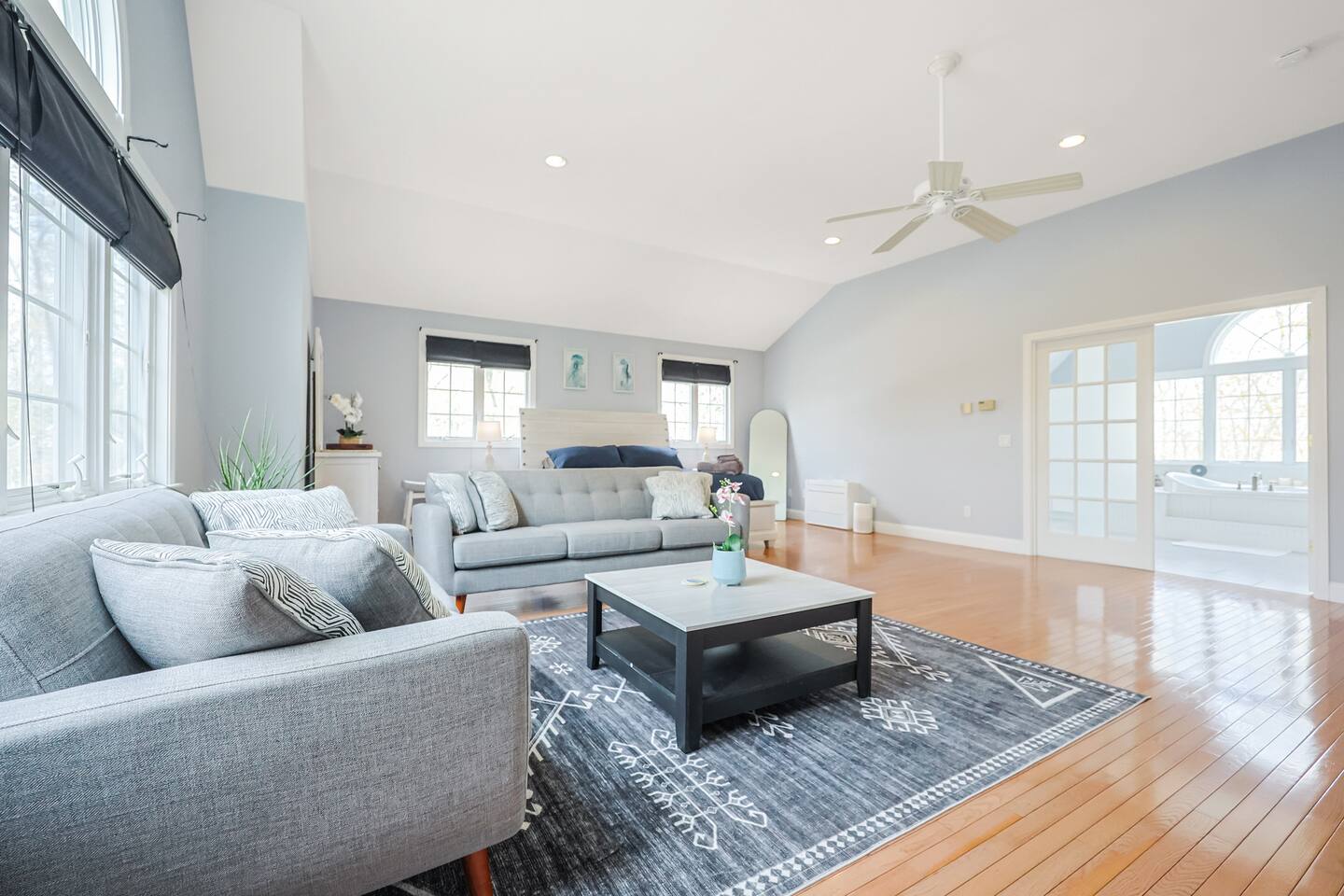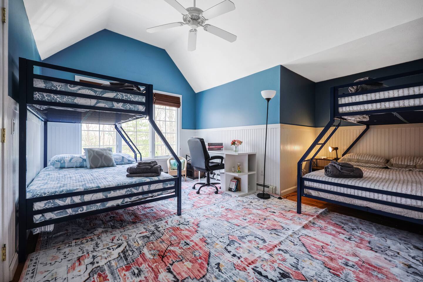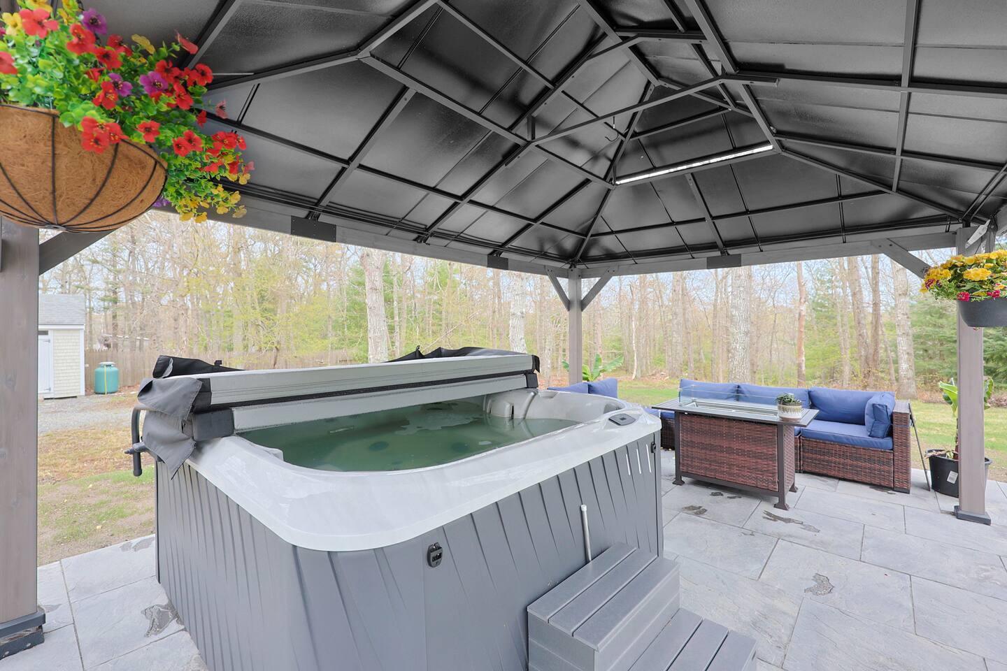 ✨ The Mill Road Estate – A Grand Cape Cod Retreat ✨ Experience unparalleled luxury at The Mill Road Estate, a meticulously designed 4-bedroom, 3.5-bathroom sanctuary nestled on 1.54 acres in East Sandwich. This expansive 4,882 sq ft residence offers a harmonious blend of elegance and comfort, perfect for discerning guests seeking an exclusive getaway. 🏠 Property Highlights: Grand Living Spaces: The main level boasts a luminous living room adorned with hardwood floors and a dual-sided fireplace (living room fireplace is for show only), seamlessly connecting to a state-of-the-art kitchen featuring quartz countertops and custom cabinetry. Luxurious Primary Suite: Ascend to the second floor to discover a sprawling primary suite, complete with a spa-inspired bathroom, offering a serene retreat after a day of exploration. Additional Bedrooms: Three generously sized bedrooms provide ample space for family and guests, complemented by a conveniently located second-floor laundry room. Entertainment Haven: The fully finished basement is designed for leisure and entertainment, featuring a game room equipped with ping pong, darts, a and a movie projector, alongside a full bathroom. Outdoor Oasis: Step outside to a private hot tub, a children's playground, a spacious deck, a fire pit area, and an outdoor shower—ideal for rinsing off after a visit to the nearby beach. Ample Parking: The estate includes ample space accommodating vehicles, boats, or recreational equipment. 🌳 Surroundings: Situated adjacent to 500 acres of conservation land, guests can enjoy direct access to private trails, offering a tranquil setting for nature walks and outdoor activities. 🏖️ Proximity to Attractions: East Sandwich Beach is approximately 3 miles away, providing pristine sands and refreshing waters for beach enthusiasts.